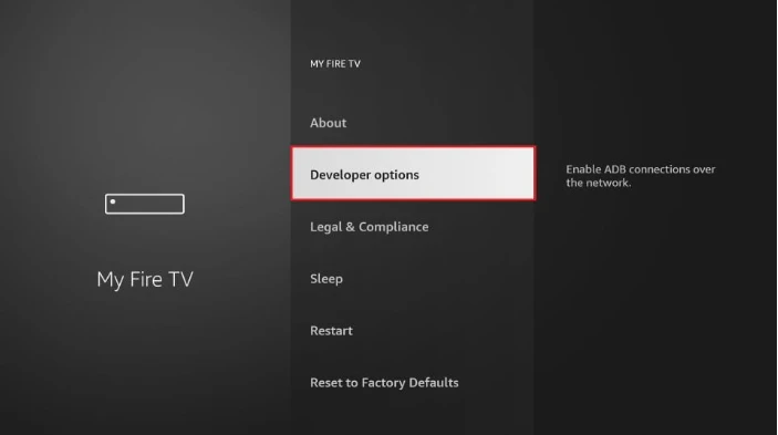 Si les options pour les développeurs ne s’affichent pas, accédez à Paramètres > Ma Fire TV > À propos. Sélectionnez ensuite Fire TV Stick et appuyez sept fois dessus pour activer les options pour les développeurs.